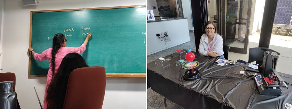 During an invited lecture on solar radiophysics and flares at ADITYA-L1 workshop, Manipal Academy of Higher Education (MAHE), Manipal, India (left) and an outreach program at NASA GSFC about the Big Helio year (right).