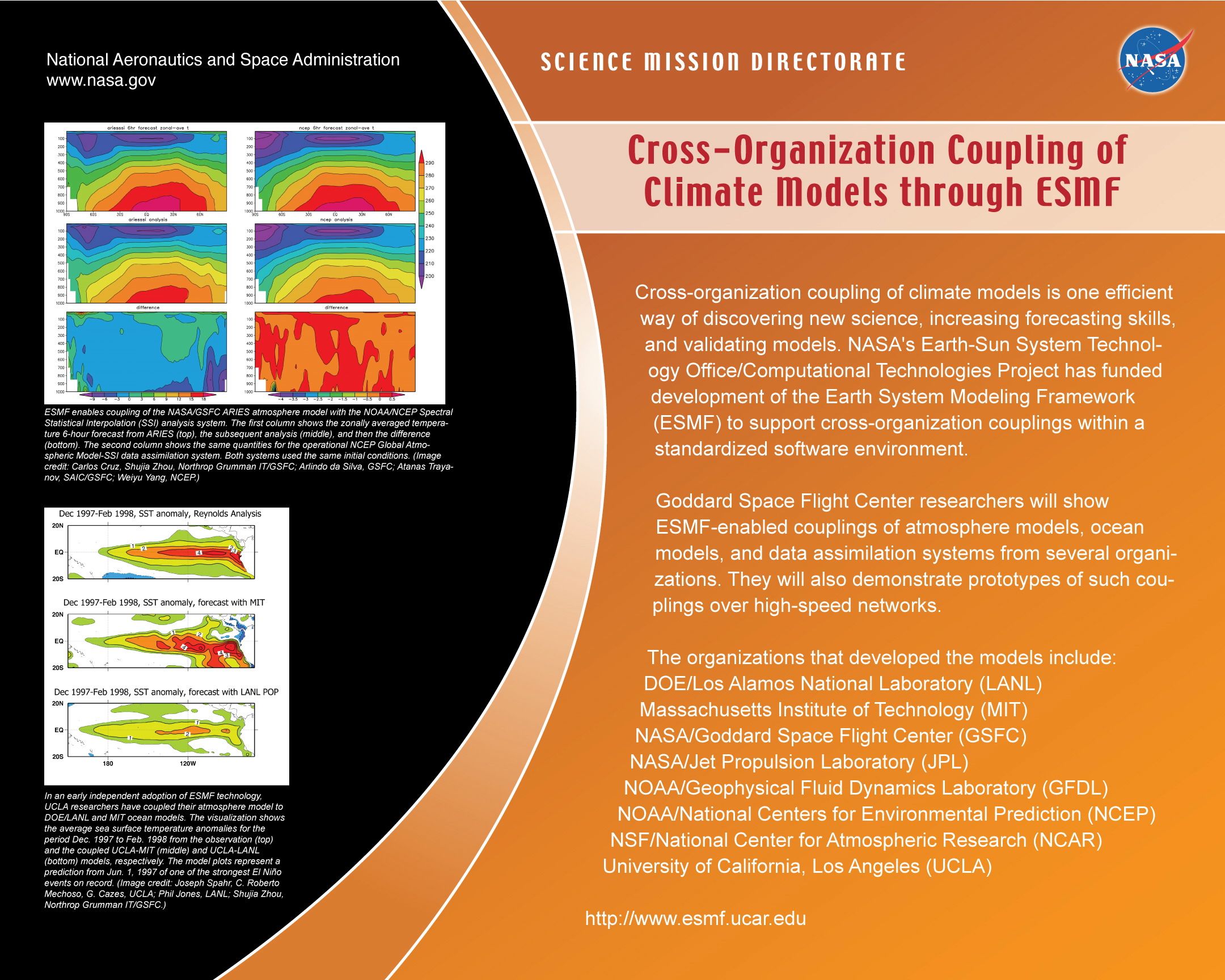 - On July 20, 2005, S. Zhou presented "Grid Computing in Distributed High-End Computing Applications: Coupled Climate Models and Geodynamics Ensemble Simulations" at the ESMF on the GRID Workshop held as the first day of the 4th Annual ESMF Community Meeting.